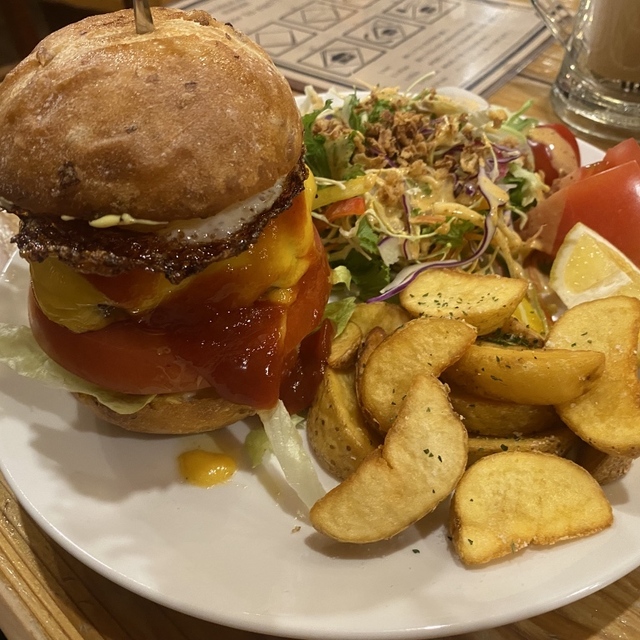 肝心のハンバーガーは、肉肉しいハンバーグと香りの良いバンズでとても美味しいです。